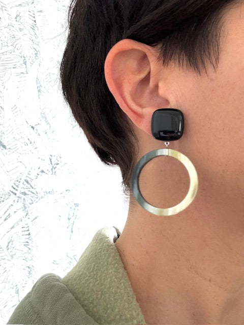 Bracelet enroulé en pierres noires avec perles facettées en or