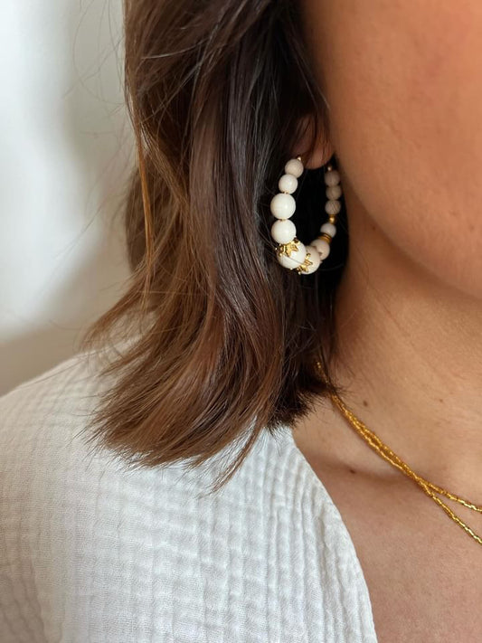 En venteCréoles dorées à l'or fin et perles